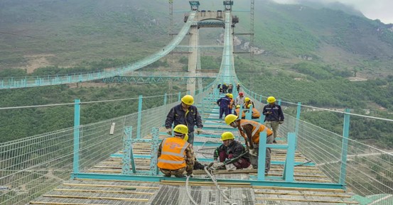 2.牂牁江特大桥是纳晴高速控制性工程,猫道顺利通过验收,将确保全桥上部结构施工各关键性工序的有序推进,也为下一步主缆架设和大桥早日建成通车奠定了坚实基础。