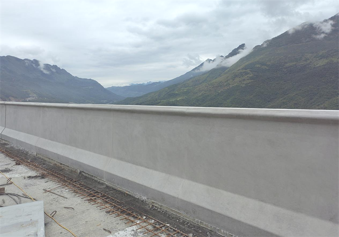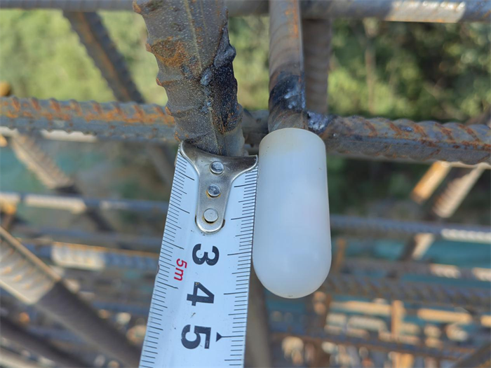 纳晴T16标小于家田右幅砼护栏施工时,首先对桥面进行测量放样,对护栏进行定位,防止护栏顶面高程超高或者不足,并设置定位筋控制;所用的钢筋均为经过检验确认的合格材料,钢筋加工严格按照图纸和规范要求下料加工,加工前除锈,弯曲好的钢筋挂牌分类堆放。主筋接长采用单面接焊,焊接长度不得小于10d,在墩顶及跨中位置钢筋必须断开,设置1cm断缝,在伸缩缝位置同伸缩缝宽度相同;钢筋保护层设置,钢筋保护层垫块采用不低于C30混凝土垫块,其厚度为4cm。以1m左右的间距呈梅花形布置,以保证保护层厚度。