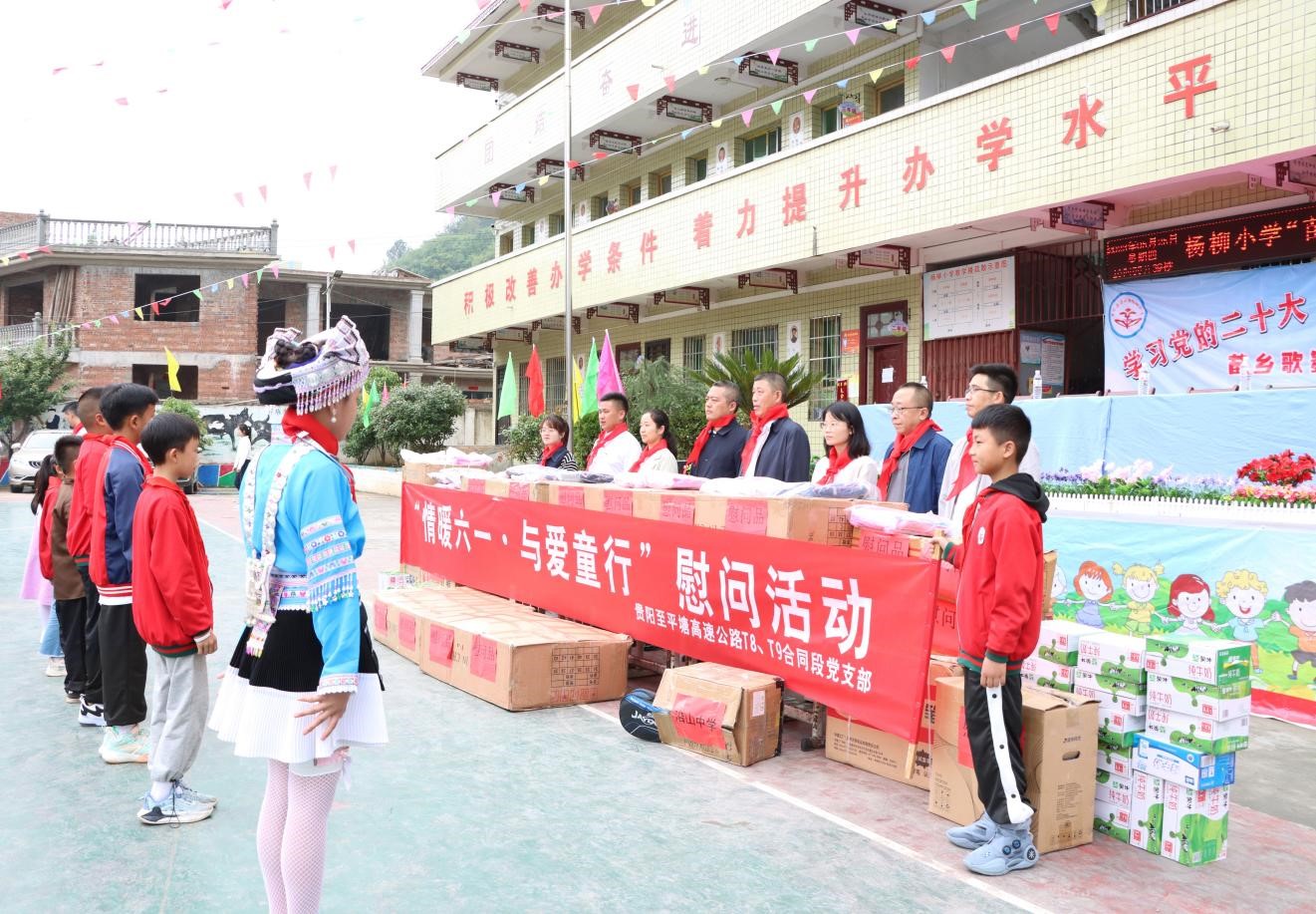 为深入推进党建联建共建工作见行见效,5月25日,在“六一”国际儿童节来临之际,贵平8、9标项目党支部联合贵定县高速公路指挥部、贵定县教育局、贵定县沿山镇人民政府到杨柳小学和杨柳幼儿园开展“情暖六一、与爱童行”关爱慰问活动。